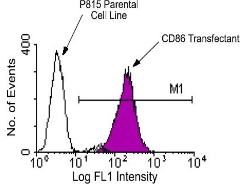 - CD86 (also known as B7-2) is a type I transmembrane glycoprotein and a member of the immunoglobulin superfamily of cell surface receptors. It is expressed at high levels on resting peripheral monocytes and dendritic cells and at very low density on resting B and T lymphocytes. (Ref.1-5) CD86 expression is rapidly upregulated by B-cell specific stimuli with peak expression at 18-42 hours after stimulation. (Ref.1,5) CD86, along with CD80/B7-1, is an important accessory molecule in T cell costimulation via its interaction with CD28 and CD152/CTLA-4. Since CD86 has rapid kinetics of induction, it is believed to be the major CD28 ligand expressed early in the immune response. (Ref.1-9). The monoclonal antibody GL1 blocks mixed lymphocyte reactions and stimulation of T cells by antigen-presenting cells. (Ref.1,3,5)Synonyms: Activation B7-2 antigen, B7.2, B70, BU63, CD28LG2, CTLA-4 counter-receptor B7.2, FUN-1, T-lymphocyte activation antigen CD86