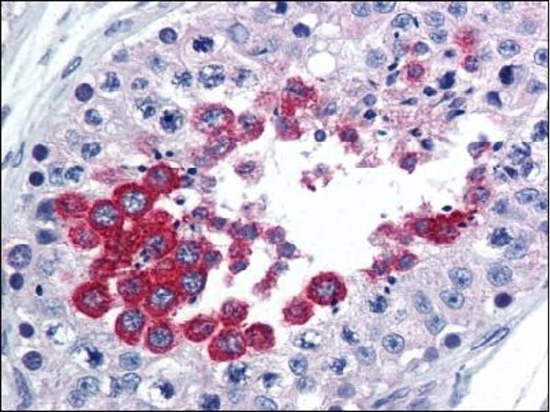 Immunohistochemistry on Paraffin Sections: 10 μg/mL. Western Blot: 1-3 μg/mL. Other applications not tested. Optimal dilutions are dependent on conditions and should be determined by the user.
