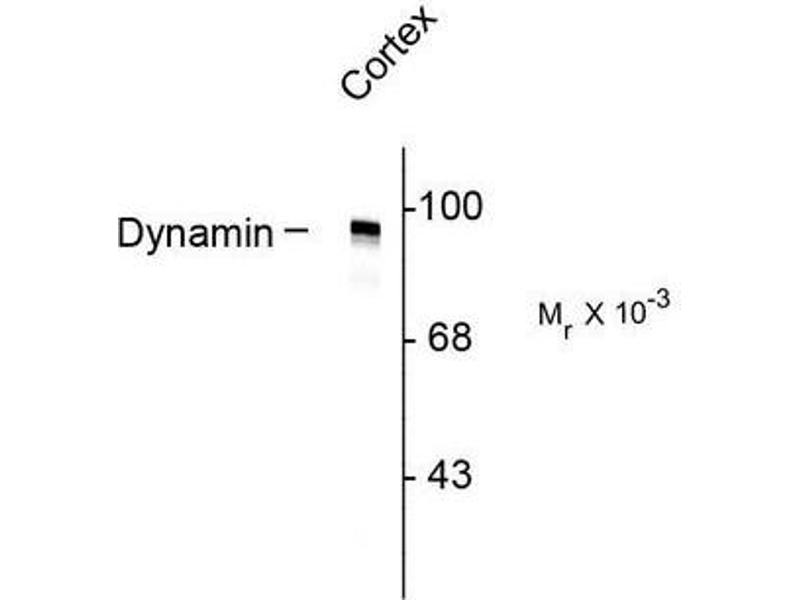 Dynamin is a member of a group of nerve terminal proteins called dephosphins that regulate synaptic vesicle endocytosis (Cousin et al., 2001, Graham et al., 2002, Tsuboi et al., 2002). There are 3 known isofoms of Dynamin, each having several splice variants as well. Dynamin I is expressed only in neurons whereas Dynamin II is ubiquitously expressed and Dynamin III is found primarily in the testes. Dynamin 1 is phosphorylated by PKC and dephosphorylated by calcineurin.Synonyms: DNM, DNM1