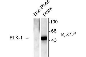- Specific for ~46k Elk-1 phosphorylated at Ser383. Immunolabeling is blocked by the phosphopeptide used as antigen but not by the corresponding dephosphopeptide.