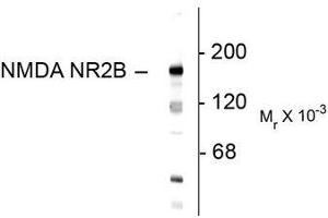 The ion channels activated by glutamate that are sensitive to N-methyl-D-aspartate (NMDA) are designated NMDA receptors (NMDAR). The NMDAR plays an essential role in memory, neuronal development and it has also been implicated in several disorders of the central nervous system including Alzheimer's, epilepsy and ischemic neuronal cell death (Grosshans et al., 2002, Wenthold et al., 2003, Carroll and Zukin, 2002). The NMDA receptor is also one of the principal molecular targets for alcohol in the CNS (Lovinger et al., 1989, Alvestad et al., 2003, Snell et al., 1996). The rat NMDAR1 (NR1) was the first subunit of the NMDAR to be clonedand it can form NMDA activated channels when expressed in Xenopus oocytes but the currents in such channels are much smaller than those seen in situ. Channels with more physiological characteristics are produced when the NR1 subunit is combined with one or more of the NMDAR2 (NR2 A-D) subunits. Overexpression of the NR2B-subunit of the NMDA receptor has been associated with increases in learning and memory while aged, memory impaired animals have deficiencies in NR2B expression (Clayton et al., 2002a, Clayton et al., 2002b). The NMDAR is also potentiated by protein phosphorylation (Lu et al., 1999).Synonyms: GRIN2B, Glutamate [NMDA] receptor subunit epsilon-2, N-methyl D-aspartate receptor subtype 2B, N-methyl-D-aspartate receptor subunit 3, NMDA Receptor 2B