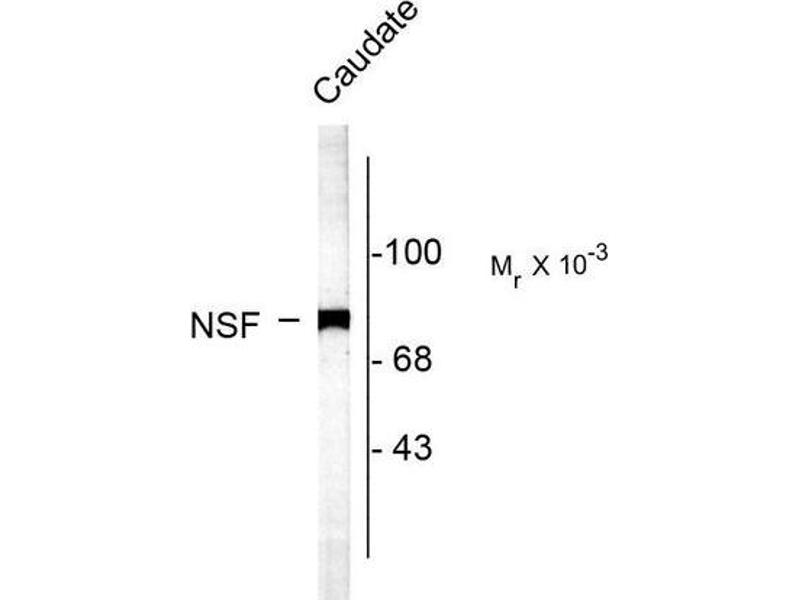 - This antibody recognizes the ~75k NSF protein.