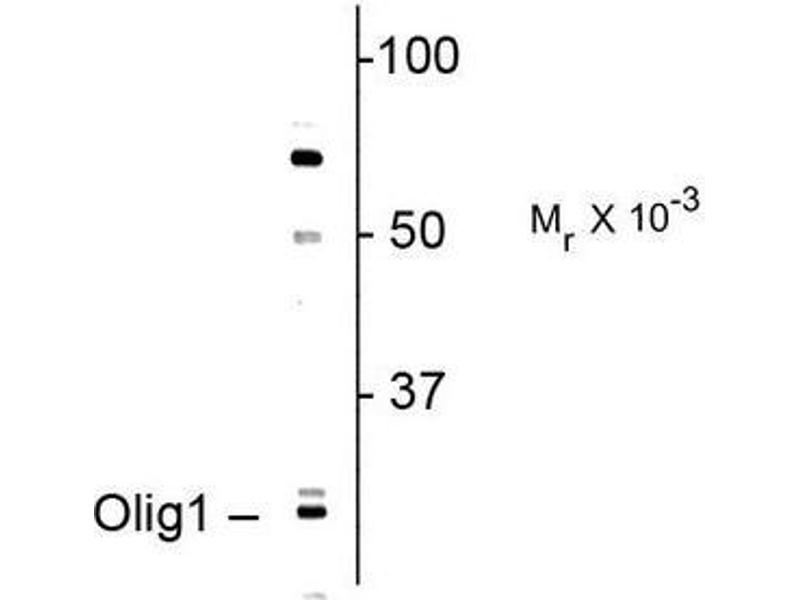 Olig genes have been identified as the earliest known markers of oligodendrocyte lineage determination to date (Zhou et al., 2000). Olig1 is a transcription factor which promotes formation and maturation of oligodendrocytes, especially within the brain. It is expressed in the ventral spinal cord as early as 9.5 dpc and by 15.5 dpc, olig1 is dispersed throughout the gray matter. In the postnatal brain, it is present preferentially in the white matter, such as corpus callosum and cerebellar medulla. Olig1 has been demonstrated as necessary in the repair of brain lesions in patients with multiple sclerosis (Arnett et al. 2004).Synonyms: OLIG-1, Oligo1, Oligodendrocyte transcription factor 1