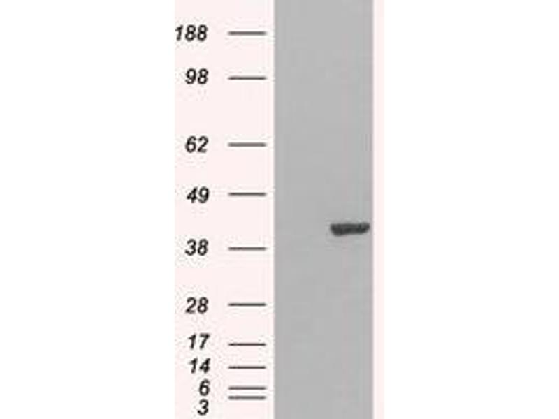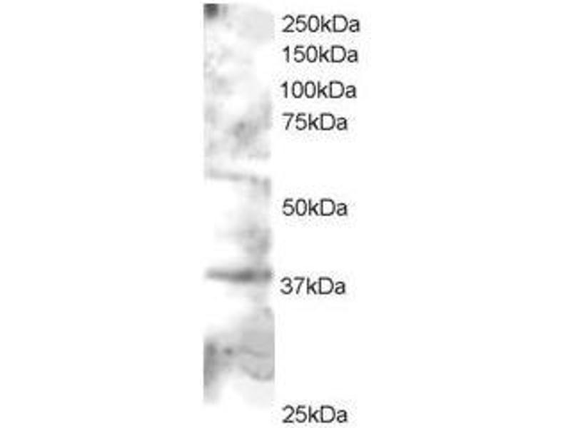 Peptide ELISA: 1/32000. Western blot: 1 - 3 μg/mL. Approx 38 kDa band seen in Jurkat lysate. Other applications not tested. Optimal dilutions are dependent on conditions and should be determined by the user.