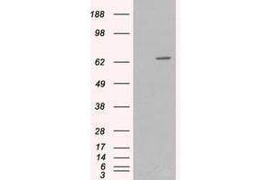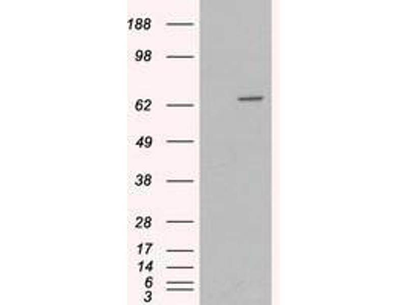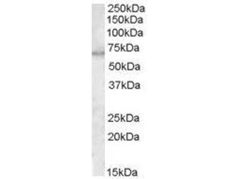 Peptide ELISA: 1/16000. Western blot: 0.3 - 1 μg/mL. Approx 70 kDa band observed in lysates of Human SkeletalMuscle and of cell line HepG2 (calculated MW of 69.0 kDa according to NP_000243.1).