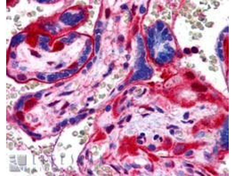 Peptide ELISA: Limit dilution 1: 32000. Western blot: 0.2-1 μg/mL. Approx 55 kDa band seen in HeLa lysate (Predicted MW ofapprox.55 kDa according to NP_001148.1). Immunohistochemistry: 3-5 μg/mL. In paraffin embedded Human Placenta shows strongstaining of Basement Membrane in trophoblasts. Other applications not tested. Optimal dilutions are dependent on conditions and should be determined by the user.