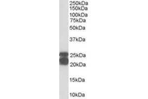 Peptide ELISA: 1/32000. Western Blot: 0.3 - 1 μg/mL. Other applications not tested. Optimal dilutions are dependent on conditions and should be determined by the user.
