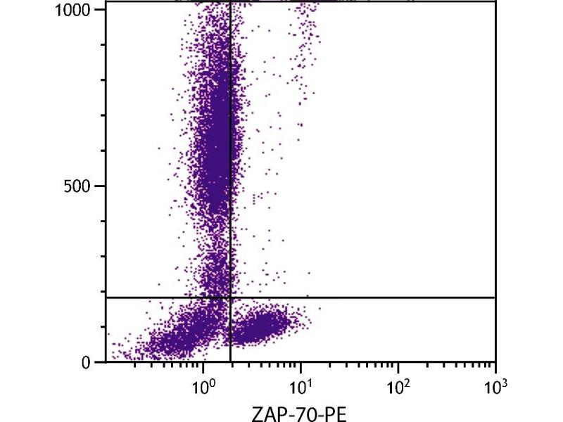 ZAP 70, also known as TCR associated protein, is a protein tyrosine kinase (PTK) with the primary role of catalyzing the phosphorylation of tyrosine residues in cellular proteins, and thus, contributes significantly to the initiation of cell signaling. ZAP 70 is expressed on T cells and NK cells. The monoclonal antibodies SB70 and SBZAP were generated against a KLH-peptide sequence corresponding to the human ZAP 70 AA 280-309.