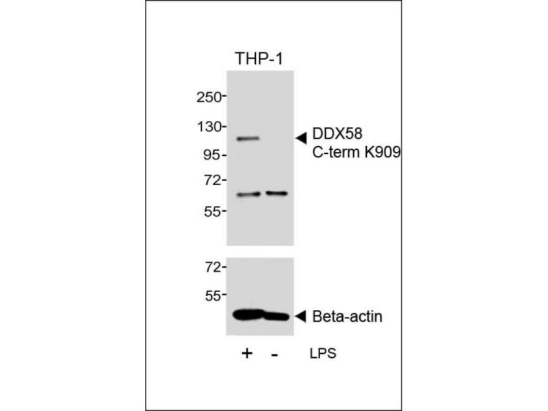 This RIG-I antibody is generated from rabbits immunized with a KLH conjugated synthetic peptide between 894-925 amino acids from the C-terminal region of human RIG-I.