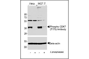 - This CDK7 Antibody is generated from rabbits immunized with a KLH conjugated synthetic phosphopeptide corresponding to amino acid residues surrounding T170 of human CDK7.