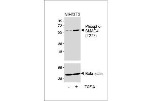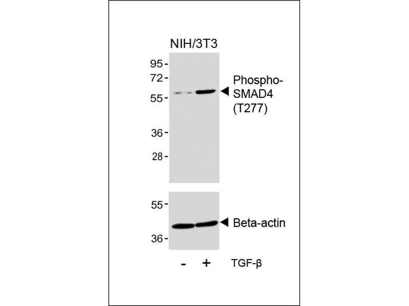This SMAD4 Antibody is generated from rabbits immunized with a KLH conjugated synthetic phosphopeptide corresponding to amino acid residues surrounding T277 of human SMAD4.