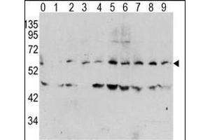 This MYC Antibody is generated from rabbits immunized with a KLH conjugated synthetic phosphopeptide corresponding to amino acid residues surrounding T58 of human MYC.