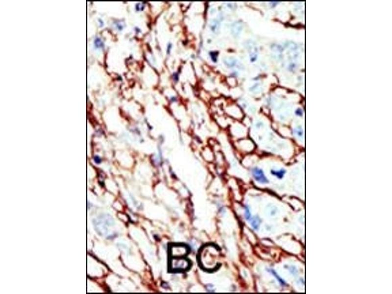 This EphA7 antibody is generated from rabbits immunized with a KLH conjugated synthetic peptide between 896-925 amino acids from the C-terminal region of human EphA7.