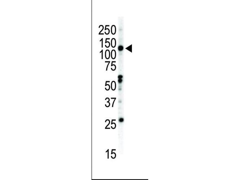 This EphB2 antibody is generated from rabbits immunized with a KLH conjugated synthetic peptide between 1021-1050 amino acids from the C-terminal region of human EphB2.