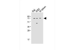 This IRAK3 antibody is generated from rabbits immunized with a KLH conjugated synthetic peptide between 45-77 amino acids from the N-terminal region of human IRAK3.