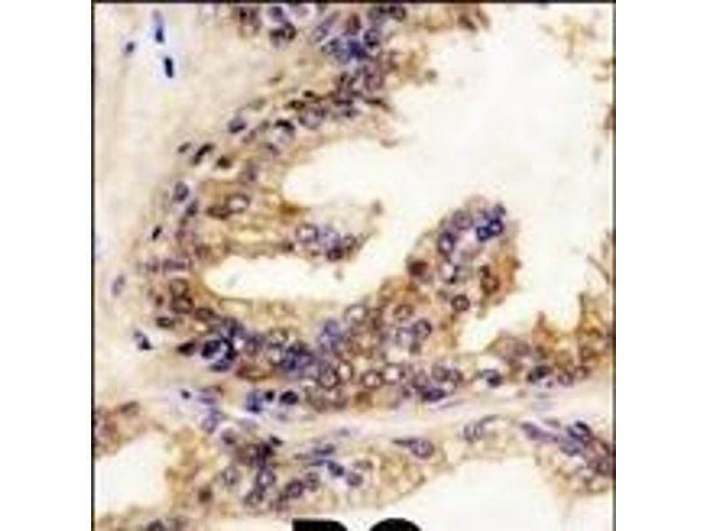 - BRAF, a mebmer of the RAF subfamily of Ser/Thr protein kinases, is involved in the transduction of mitogenic signals from the cell membrane to the nucleus. It may play a role in the postsynaptic responses of hippocampal neuron. This cytoplasmic protein is expressed in brain and testis. Defects in BRAF are involved in a wide range of cancers including lung cancer and non-Hodgkin lymphoma (NHL). This protein contains 1 zinc-dependent phorbol-ester and DAG binding domain.