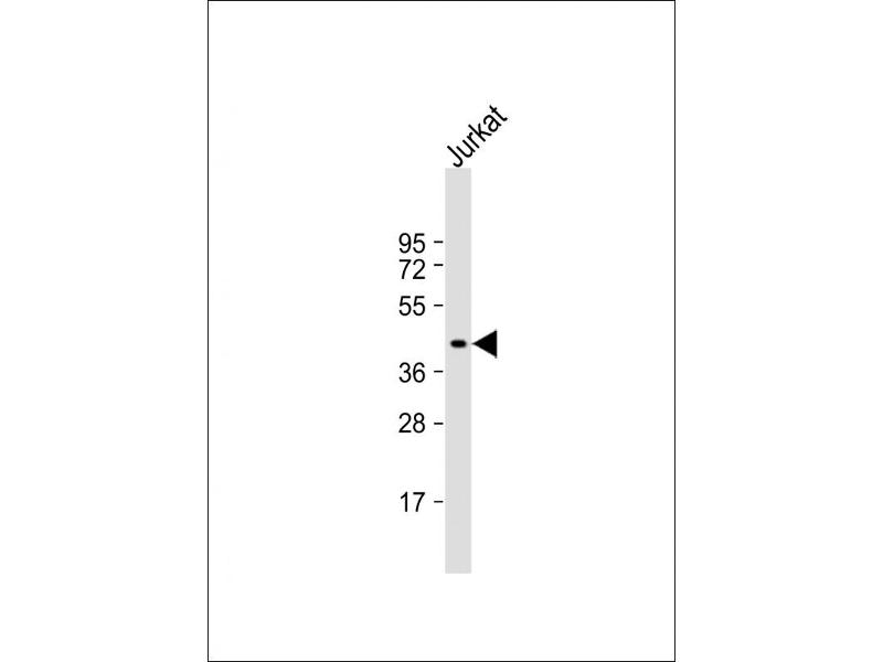 This PIM1 antibody is generated from rabbits immunized with a KLH conjugated synthetic peptide between 374-404 amino acids from the C-terminal region of human PIM1.