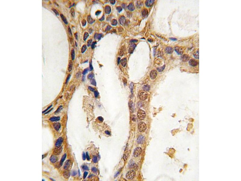 PIM1, which belongs to the Serine/Threonine protein kinase family, is thought to play a role in signal transduction in blood cells. The protooncogene PIM1 encodes a protein kinase upregulated in prostate cancer. It may affect the structure or silencing of chromatin by phosphorylating HP1 gamma/CBX3. PIM1 is expressed primarily in cells of the hematopoietic and germ line lineages.