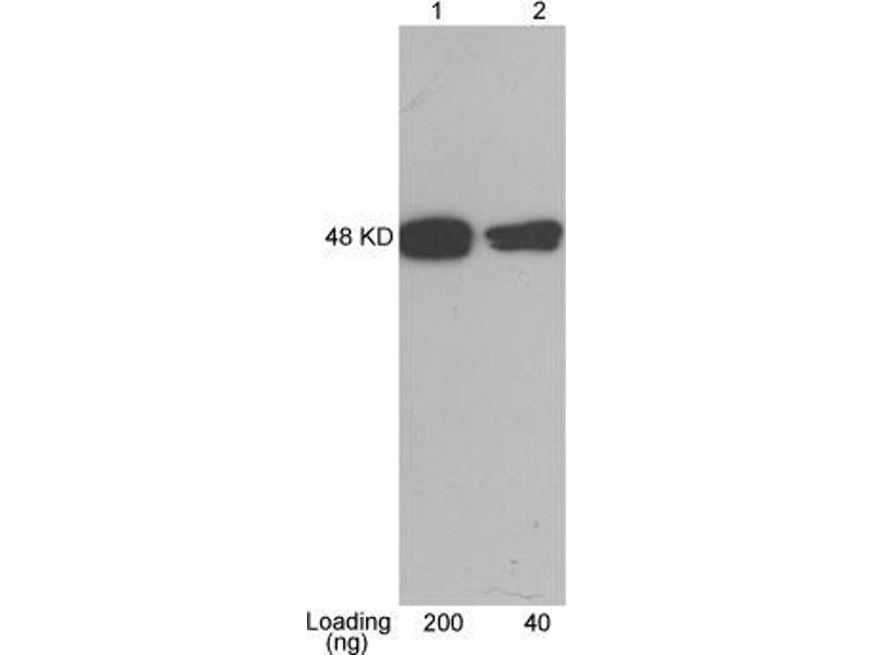 ELISA: 0.05-0.2 µg/mL Western blot:0.1-1.0 µg/mL Western Blot Using ONE-HOUR WesternTM Kit: For quick results, ONE-HOUR WesternTM Kit is recommendet. 10 µg of this antibody is mixed with 10 mL of WB solution for 8 cm x 8 cm membrane. Other applications: user-optimized