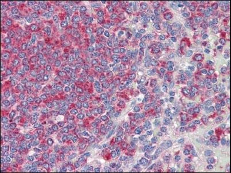 The highly glycosylated 75-120 kD antigen CD34 is possibly an adhesion molecule with a putative role in early hematopoiesis by mediating the attachment of stem cells to the bone marrow extracellular matrix or directly to stromal cells. It could act as a scaffold for the attachment of lineage specific glycans, allowing stem cells to bind to lectins expressed by stromal cells or other marrow components. CD34 is thought to have a role in presenting carbohydrate ligands to selectins. The intracellular chain of the CD34 antigen is a site of phosphorylation by activated protein kinase C, suggesting a putative role in signal transduction. Two isoforms of CD34 have been reported to be generated by alternative splicing. CD34 is highly expressed on hematopoietic progenitors, as well as on endothelial cells, brain, and testis. Staining for CD34 has been used to measure angiogenesis, which reportedly predicts tumor recurrence.Synonyms: Hematopoietic progenitor cell antigen CD34, Hematopoietic progenitor cell marker