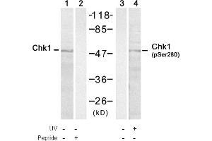 This antibody detects endogenous levels of Chk1 only when phosphorylated at Serine 280.