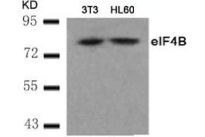 EIF4B is required for the binding of mRNA to ribosomes. It functions in close association with eIF4F and eIF4A. It binds near the 5'-terminal cap of mRNA in the presence of eIF4F and ATP. It promotes the ATPase activity and the ATP-dependent RNA unwinding activity of both eIF4A and eIF4F (referenced from swissprot).Synonyms: Eukaryotic translation initiation factor 4B, eIF-4B