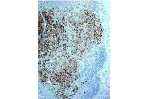ELISA. Western Blot. Immunohistochemistry on Paraffin Sections: 1 μg/mL. Formalin-fixed tissue may be pre-treated for 30 min at 100 °C with Unmasking Citrate buffer,buffered EDTA or Glycol based solution preferably in a pressure cooker. This antibody is suitable for the detection of mammaglobin in metastatic mammacarcinoma, differential diagnosis of metastases in sentinel lymph nodes. Positive Control: Mamma carcinoma, skin (eccrine sweat glands). Other applications not tested. Optimal dilutions are dependent on conditions and should be determined by the user.