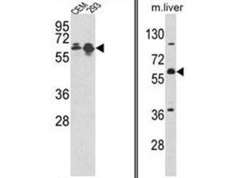 ELISA: 1/1,000. Western blotting: 1/100 - 1/500. Other applications not tested. Optimal dilutions are dependent on conditions and should be determined by the user.