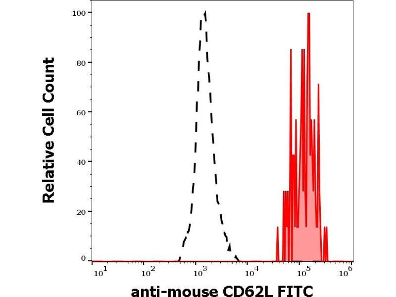 The rat monoclonal antibody MEL-14 reacts with an extracellular epitope of murine CD62L (L-selectin), a 75 kDa single chain type I glycoprotein expressed on most peripheral blood B lymphocytes, T lymphocytes, monocytes and granulocytes, it is also present on a subset of NK cells and certain hematopoietic malignant cells.