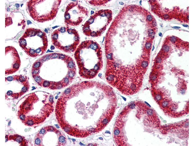 Usage: Immunohistochemistry: This antibody was validated for use in immunohistochemistry on a panel of 21 formalin-fixed, paraffin-embedded (FFPE) human tissues after heat induced antigen retrieval in pH 6.0 citrate buffer. After incubation with the primary antibody, slides were incubated with biotinylated secondary antibody, followed by alkaline phosphatase-streptavidin and chromogen. The stained slides were evaluated by a pathologist to confirm staining specificity. The optimal working concentration for this antibody was determined to be 15 μg/mL. -