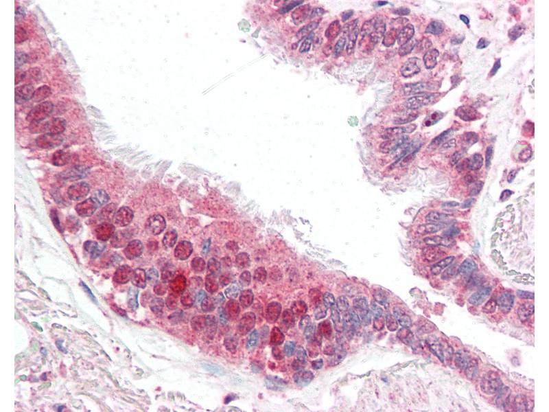 Usage: Immunohistochemistry: This antibody was validated for use in immunohistochemistry on a panel of 21 formalin-fixed, paraffin-embedded (FFPE) human tissues after heat induced antigen retrieval in pH 6.0 citrate buffer. After incubation with the primary antibody, slides were incubated with biotinylated secondary antibody, followed by alkaline phosphatase-streptavidin and chromogen. The stained slides were evaluated by a pathologist to confirm staining specificity. The optimal working concentration for this antibody was determined to be 5 μg/mL. Western Blot: Can be used for detection of FLIP by Western blot at 1:1000 dilution. 35 kD and 25 kD bands can be detected. The antibody recognizes human and murine FLIPg and FLIPd but not FLIPa and FLIPb. -