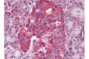 Western blot. ELISA: 1/6000-1/24000. Immunohistochemistry on Paraffin Sections: 5 μg/mL. This antibody was validated for use in immunohistochemistry on a panel of 21formalin-fixed, paraffin-embedded (FFPE) human tissues after heat induced antigenretrieval in pH 6.0 citrate buffer. After incubation with the primary antibody, slides wereincubated with biotinylated secondary antibody, followed by alkalinephosphatase-streptavidin and chromogen.