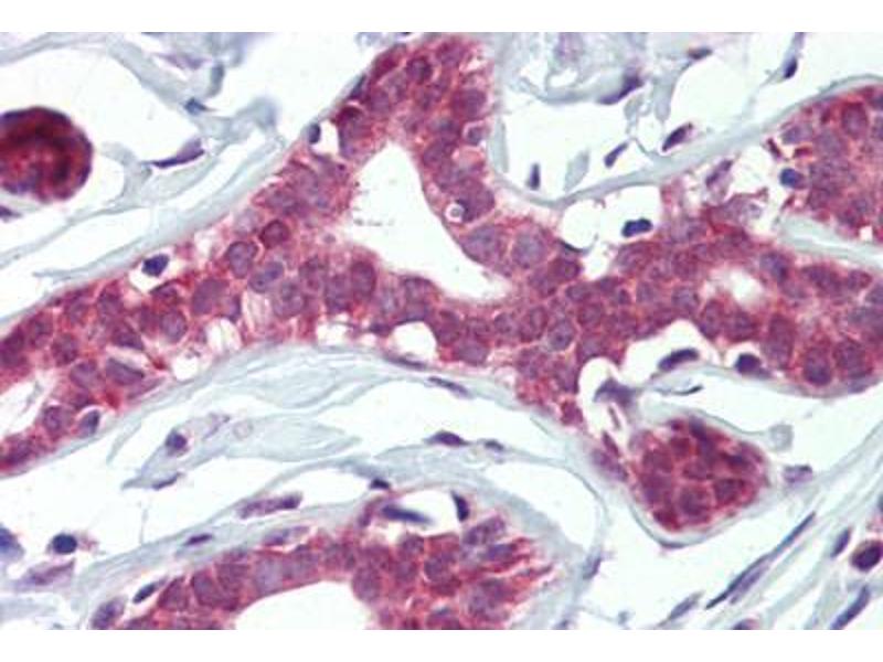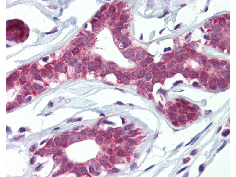 Usage: Immunohistochemistry: This antibody was validated for use in immunohistochemistry on a panel of 21 formalin-fixed, paraffin-embedded (FFPE) human tissues after heat induced antigen retrieval in pH 6.0 citrate buffer. After incubation with the primary antibody, slides were incubated with biotinylated secondary antibody, followed by alkaline phosphatase-streptavidin and chromogen. The stained slides were evaluated by a pathologist to confirm staining specificity. The optimal working concentration for this antibody was determined to be 10 μg/mL. -