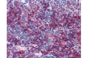 Usage: Immunohistochemistry: This antibody was validated for use in immunohistochemistry on a panel of formalin-fixed, paraffin-embedded (FFPE) mouse tissues after heat induced antigen retrieval in pH 6.0 citrate buffer. After incubation with the primary antibody, slides were incubated with biotinylated secondary antibody, followed by alkaline phosphatase-streptavidin and chromogen. The stained slides were evaluated by a pathologist to confirm staining specificity. The optimal working concentration for this antibody was determined to be 10 μg/mL. -