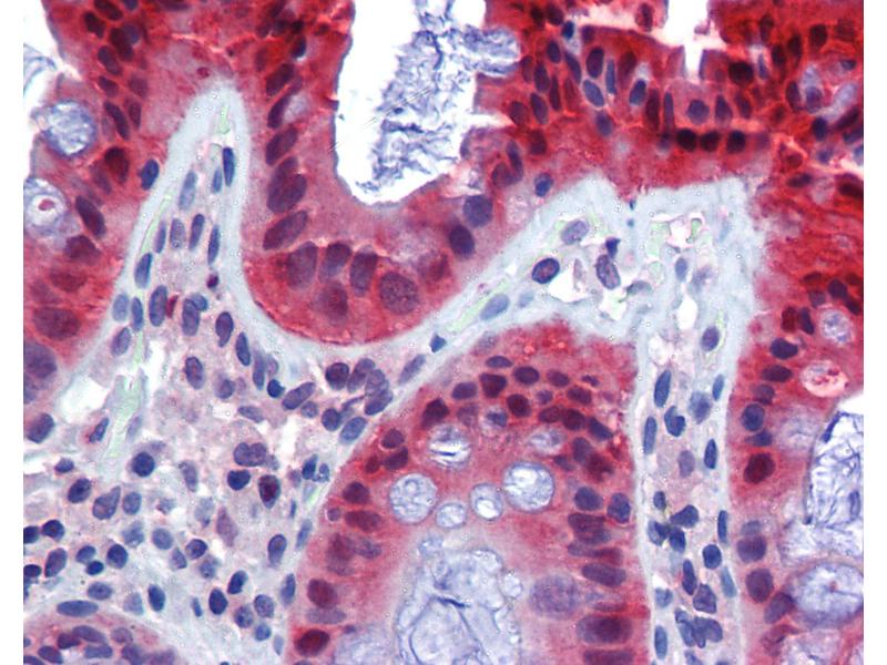 Usage: Immunohistochemistry: This antibody was validated for use in immunohistochemistry on a panel of 21 formalin-fixed, paraffin-embedded (FFPE) human tissues after heat induced antigen retrieval in pH 6.0 citrate buffer. After incubation with the primary antibody, slides were incubated with biotinylated secondary antibody, followed by alkaline phosphatase-streptavidin and chromogen. The stained slides were evaluated by a pathologist to confirm staining specificity. The optimal working concentration for this antibody was determined to be 10 μg/mL. -