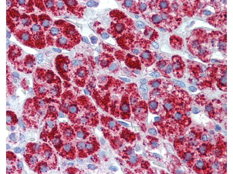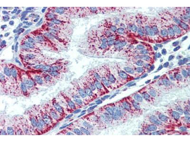 Usage: Immunohistochemistry: This antibody was validated for use in immunohistochemistry on a panel of 21 formalin-fixed, paraffin-embedded (FFPE) human tissues after heat induced antigen retrieval in pH 6.0 citrate buffer. After incubation with the primary antibody, slides were incubated with biotinylated secondary antibody, followed by alkaline phosphatase-streptavidin and chromogen. The stained slides were evaluated by a pathologist to confirm staining specificity. The optimal working concentration for this antibody was determined to be 10 μg/mL. -
