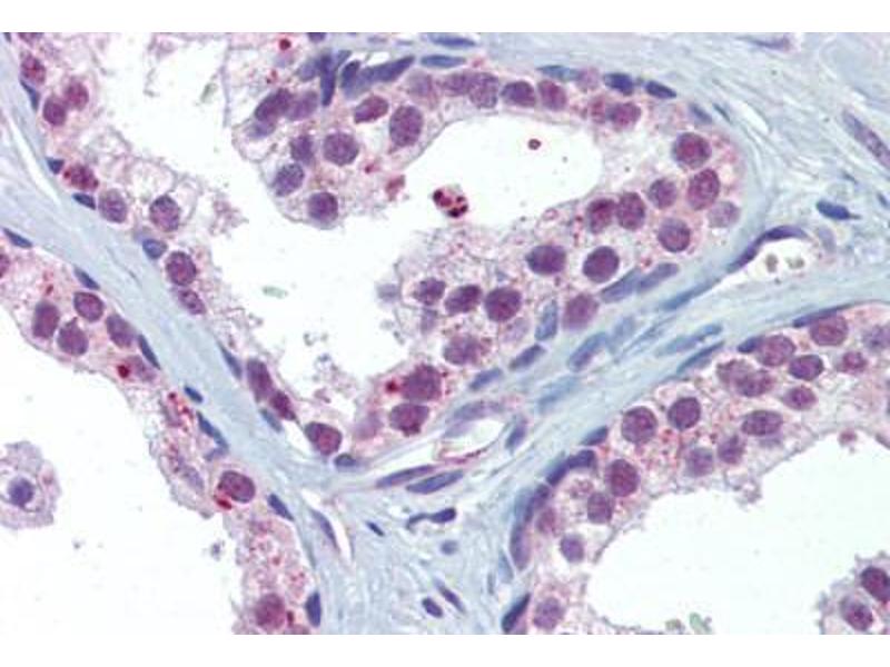 Usage: Immunohistochemistry: This antibody was validated for use in immunohistochemistry on a panel of 21 formalin-fixed, paraffin-embedded (FFPE) human tissues after heat induced antigen retrieval in pH 6.0 citrate buffer. After incubation with the primary antibody, slides were incubated with biotinylated secondary antibody, followed by alkaline phosphatase-streptavidin and chromogen. The stained slides were evaluated by a pathologist to confirm staining specificity. The optimal working concentration for this antibody was determined to be 10 μg/mL -