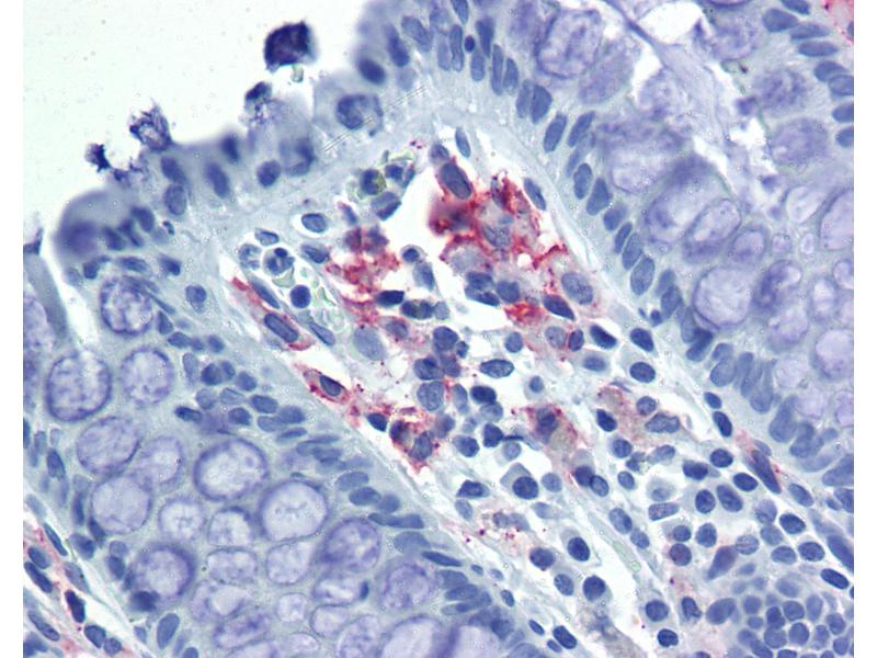 Usage: Immunohistochemistry: This antibody was validated for use in immunohistochemistry on a panel of 21 formalin-fixed, paraffin-embedded (FFPE) human tissues after heat induced antigen retrieval in pH 6.0 citrate buffer. After incubation with the primary antibody, slides were incubated with biotinylated secondary antibody, followed by alkaline phosphatase-streptavidin and chromogen. The stained slides were evaluated by a pathologist to confirm staining specificity. The optimal working concentration for this antibody was determined to be 20 μg/mL. Tested by flow cytometric analysis of cultured human dendritic cells and peripheral blood leukocytes. This can be used at less than or equal to 1 μg per test. A test is defined as the amount (ug) of antibody that will stain a cell sample in a final volume of 100 μL. Cell number should be determined empirically but can range from 10^5 to 10^8 cells/test. -