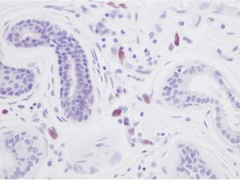 Usage: Immunohistochemistry: This antibody stained formalin-fixed, paraffin-embedded sections of normal human skin. The recommended concentrations are 1 μg/mL for two hours at room temperature or 0.25 μg/mL overnight at 4 °C. An HRP-labeled polymer detection system was used with a non-alcohol soluble AEC chromogen and a proteinase K antigen retrieval. Optimal concentrations and conditions may vary. . Neutralization: To yield one-half maximal inhibition [ND] of the biological activity of Human IL-8 (100 ng/mL), a concentration of 2-3 μg/mL of this antibody is required. ELISA: To detect Human IL-8 by sandwich ELISA (using 100 μL/well antibody solution) a concentration of 0.5-2 μg/mL of this antibody is required. This antigen affinity purified antibody, in conjunction with Biotinylated Anti-Human IL-8 (LS-C104790) as a detection antibody, allows the detection of at least 0.2-0.4 ng/well of recombinant Human IL-8. Western Blot: To detect Human IL-8 by Western Blot analysis this antibody can be used at a concentration of 0.1-0.2 μg/mL. When used in conjunction with compatible secondary reagents, the detection limit for recombinant Human IL-8 is 1.5-3 ng/lane, under either reducing or non-reducing conditions. -