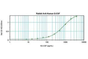 Usage: Immunohistochemistry: This antibody stained formalin-fixed, paraffin-embedded sections of human angiosarcoma. The recommended concentration is 0.25 μg/mL with an overnight incubation at 4 °C. An HRP-labeled polymer detection system was used with a DAB chromogen. Heat induced antigen retrieval with a pH 6 sodium citrate buffer is recommended. Optimal concentrations and conditions may vary. Neutralization: To yield one-half maximal inhibition [ND] of the biological activity of hG-CSF (0.5 ng/mL), a concentration of 0.04-0.06 μg/mL of this antibody is required. ELISA: To detect hG-CSF by sandwich ELISA (using 100 μL/well antibody solution) a concentration of 0.5-2 μg/mL of this antibody is required. This antigen affinity purified antibody, in conjunction with Biotinylated Anti-Human G-CSF (LS-C104674) as a detection antibody, allows the detection of at least 0.2-0.4 ng/well of recombinant hG-CSF. Western Blot: To detect hG-CSF by Western Blot analysis this antibody can be used at a concentration of 0.1-0.2 μg/mL. Used in conjunction with compatible secondary reagents the detection limit for recombinant hG-CSF is 1.5-3 ng/lane, under either reducing or non-reducing conditions. -