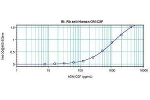 Usage: The applications listed have been tested for the unconjugated form of this product. Other forms have not been tested. ELISA: To detect hGM-CSF by direct ELISA (using 100 μL/well antibody solution) a concentration of 0.25-1 μg/mL of this antibody is required. This biotinylated polyclonal antibody, in conjunction with compatible secondary reagents, allows the detection of at least 0.2-0.4 ng/well of recombinant hGM-CSF. To detect hGM-CSF by sandwich ELISA (using 100 μL/well antibody solution) a concentration of 0.25-1 μg/mL of this antibody is required. This biotinylated polyclonal antibody, in conjunction with Polyclonal Anti-Human GM-CSF (LS-C104671) as a capture antibody, allows the detection of at least 0.2-0.4 ng/well of recombinant hGM-CSF. Western Blot: To detect hGM-CSF by Western Blot analysis this antibody can be used at a concentration of 0.1-0.2 μg/mL. Used in conjunction with compatible secondary reagents the detection limit for recombinant hGM-CSF is 1.5-3 ng/lane, under either reducing or non-reducing conditions. -