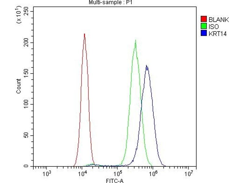 - Anti-Cytokeratin 14/KRT14 Antibody (ABIN4886653). Tested in Flow Cytometry, IHC, IHC-F, ICC, WB applications. This antibody reacts with Human, Mouse, Rat. This is a premium antibody that guarantees superior quality, high affinity, and strong signals with minimal background in Western blot applications.