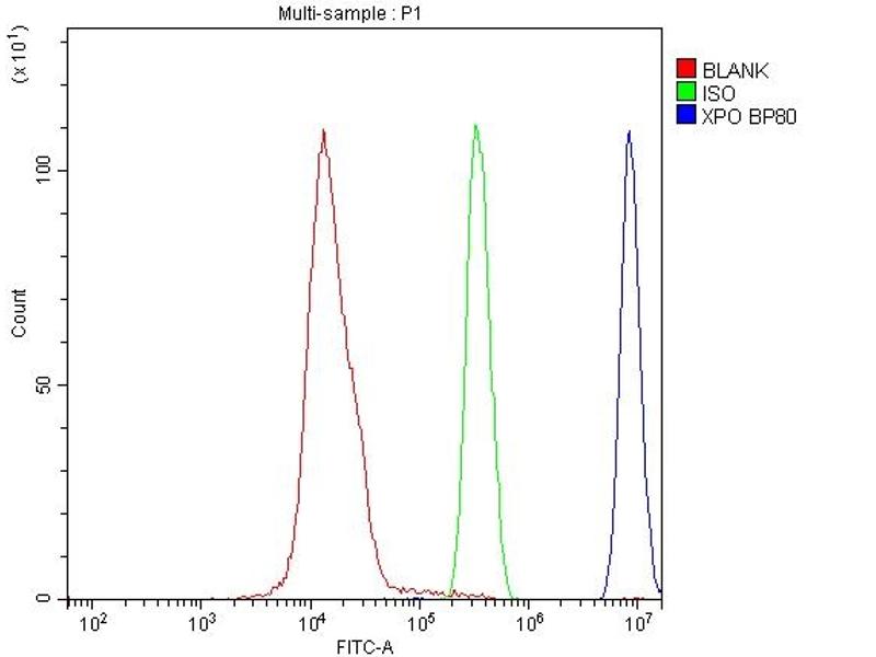 Background: Exportin 1 (XPO1), also known as chromosomal maintenance 1 (CRM1), is an eukaryotic protein that mapped to human chromosome 2p16 by fluorescence in situ hybridization. This protein mediates leucine-rich nuclear export signal (NES)-dependent protein transport. It specifically inhibits the nuclear export of Rev and U snRNAs. Additionally, this protein is involved in the control of several cellular processes by controlling the localization of cyclin B, MPAK, and MAPKAP kinase 2. It also regulates NFAT and AP-1.
