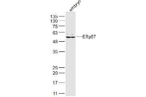 Synonyms: P58, ER60, ERp57, ERp60, ERp61, GRP57, GRP58, PI-PLC, HsT17083, HEL-S-269, HEL-S-93n, Protein disulfide-isomerase A3, 58 kDa glucose-regulated protein, 58 kDa microsomal protein, Disulfide isomerase ER-60, Endoplasmic reticulum resident protein 57, ER protein 57, Endoplasmic reticulum resident protein 60, ER protein 60, PDIA3