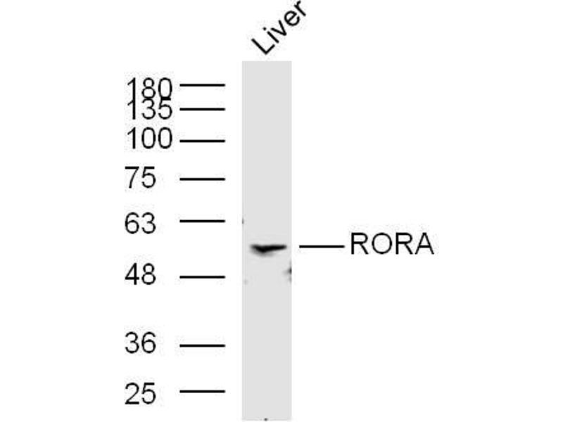 Background: Nuclear receptor that binds DNA as a monomer to ROR response elements (RORE) containing a single core motif half-site 5'-AGGTCA-3' preceded by a short A-T-rich sequence. Key regulator of embryonic development, cellular differentiation, immunity, circadian rhythm as well as lipid, steroid, xenobiotics and glucose metabolism. Considered to have intrinsic transcriptional activity, have some natural ligands like oxysterols that act as agonists (25-hydroxycholesterol) or inverse agonists (7-oxygenated sterols), enhancing or repressing the transcriptional activity, respectively. Recruits distinct combinations of cofactors to target genes regulatory regions to modulate their transcriptional expression, depending on the tissue, time and promoter contexts. Regulates genes involved in photoreceptor development including OPN1SW, OPN1SM and ARR3 and skeletal muscle development with MYOD1. Required for proper cerebellum development, regulates SHH gene expression, among others, to induce granule cells proliferation as well as expression of genes involved in calcium-mediated signal transduction. Regulates the circadian expression of several clock genes, including CLOCK, ARNTL/BMAL1, NPAS2 and CRY1. Competes with NR1D1 for binding to their shared DNA response element on some clock genes such as ARNTL/BMAL1, CRY1 and NR1D1 itself, resulting in NR1D1-mediated repression or RORA-mediated activation of clock genes expression, leading to the circadian pattern of clock genes expression. Therefore influences the period length and stability of the clock. Regulates genes involved in lipid metabolism such as apolipoproteins APOA1, APOA5, APOC3 and PPARG. In liver, has specific and redundant functions with RORC as positive or negative modulator of expression of genes encoding phase I and phase II proteins involved in the metabolism of lipids, steroids and xenobiotics, such as CYP7B1 and SULT2A1.