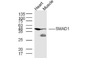 Background: Transcriptional modulator activated by BMP (bone morphogenetic proteins) type 1 receptor kinase. SMAD1 is a receptor-regulated SMAD (R-SMAD). SMAD1/OAZ1/PSMB4 complex mediates the degradation of the CREBBP/EP300 repressor SNIP1. May act synergistically with SMAD4 and YY1 in bone morphogenetic protein (BMP)-mediated cardiac-specific gene expression.