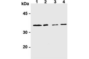 Western blotting: 1 μg/mL for chemiluminescence detection system. Immunoprecipitation: 2 μg/300 μL of cell extract. Immunocytochemistry. Detailed procedure is provided in Protocols.