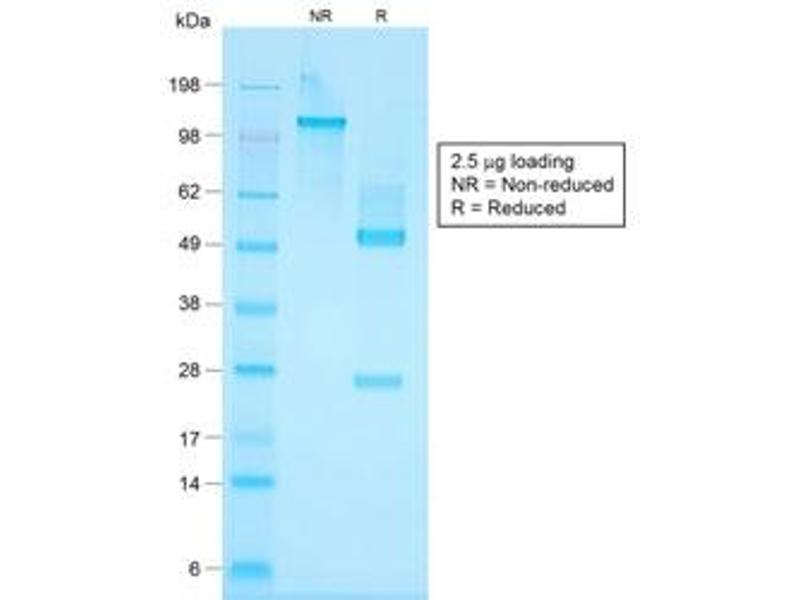 1. The prediluted format is supplied in a dropper bottle and is optimized for use in IHC. After epitope retrieval step (if required), drip mAb solution onto the tissue section and incubate at RT for 30 min.\. Flow Cytometry: 0.5-1 μg/million cells in 0.1ml,Immunofluorescence: 1-2 μg/mL,Western blot: 0.5-1 μg/mL,Immunohistochemistry (FFPE): 0.25-0.5 μg/mL for 30 min at RT,Prediluted IHC only format: incubate for 30 min at RT (1)