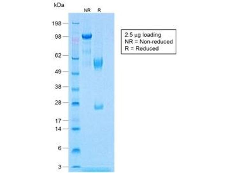 1. The prediluted format is supplied in a dropper bottle and is optimized for use in IHC. After epitope retrieval step (if required), drip mAb solution onto the tissue section and incubate at RT for 30 min.\. FACS: 0.5-1 μg/10^6 cells,Immunofluorescence: 1-2 μg/mL,Immunohistochemistry (FFPE): 0.5-1 μg/mL for 30 min at RT,Prediluted IHC only format: incubate for 30 min at RT (1)