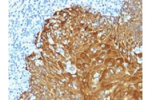 - Twenty human keratins are resolved with two-dimensional gel electrophoresis into acidic (pI 6.0) subfamilies. This antibody detects acidic (Type I or LMW) and basic (Type II or HMW) cytokeratins: 67 kDa (CK1), 64 kDa (CK3), 59 kDa (CK4), 58 kDa (CK5), 56 kDa (CK6), 52 kDa (CK8), 56.5 kDa (CK10), 50 kDa (CK14), 50 kDa (CK15), 48 kDa (CK16), 40 kDa (CK19). Many studies have shown the usefulness of keratins as markers in cancer research and tumor diagnosis. It is a broad spectrum anti pan-cytokeratin antibody, which differentiates epithelial tumors from non-epithelial tumors e.g. squamous vs. adenocarcinoma of the lung, liver carcinoma, breast cancer, and esophageal cancer. It may be useful to characterize the source of various neoplasms and to study the distribution of cytokeratin containing cells in epithelia during normal development and during the development of epithelial neoplasms. This antibody stains cytokeratins present in normal and abnormal human tissues and has high sensitivity in the recognition of epithelial cells and carcinomas.